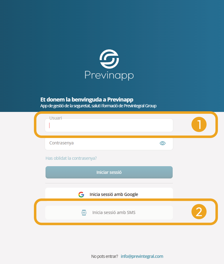 CODI D’ACCÉS RÀPID AMB SMS, clica a la icona d’SMS
