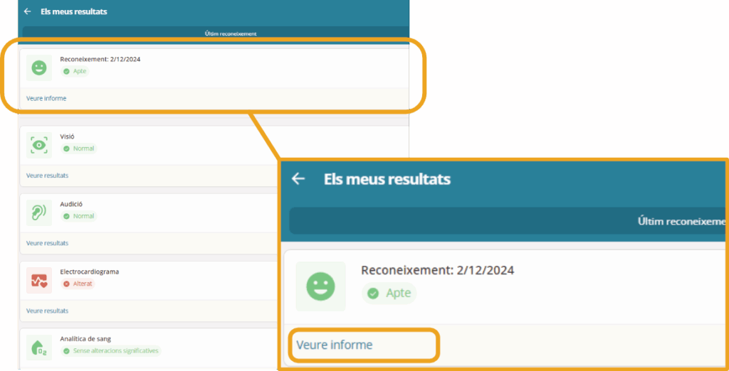 Visualitza i descarrega’t el teu reconeixement mèdic.